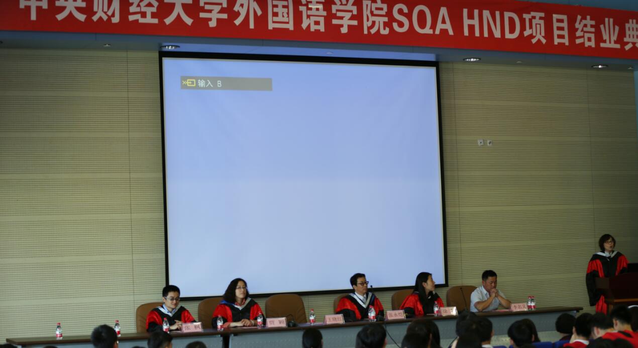 结业典礼上,徐芳副书记宣读了关于对SQA HND项目2016届优秀学生、先进个人和突出贡献奖进行表彰的决定,SQA HND项目负责人张永恺先生、贾颖女士、王晓红院长和协调员张枫老师为获奖学生颁奖;学院领导为2016届校友代表佩戴了校友徽章;院长王晓红教授宣读了SQA HND项目2016届结业的决定并和协调员张枫老师一起为SQA HND项目2016届学生代表颁发了结业证书,并为结业学生拨穗。