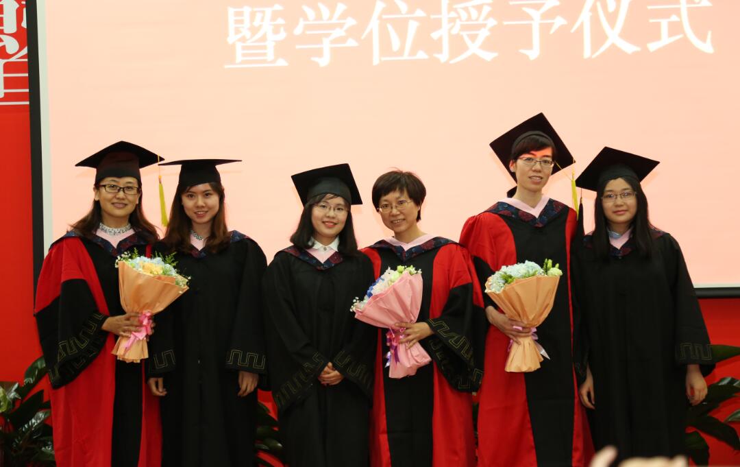 在校友代表刘灿为毕业生送上真心祝福与鼓励之后,我院教师代表为获得市级和校级优秀毕业生颁奖,表达学院对优秀毕业生的鼓励与肯定。随后,激动人心的学位授予仪式正式开始。2016届全体毕业生个个意气风发,满怀激情,井然有序地列队登台受礼。学院副院长师文杰宣读毕业生名单,徐兆铭书记为2016届毕业生颁发毕业证书和学位证书,王晓红院长为毕业生拨转流苏,与每位毕业生合影留念。王晓红院长和徐兆铭书记亲切的笑容、温暖的握手和深情的祝福让每一位毕业生都倍受鼓舞,毕业生欢乐的笑容,与师长的一个个深情拥抱彰显了开元(中国)学生与老师之间深厚的师生情谊,此起彼伏的热烈的掌声表明了毕业生对外院强烈的归属和感激之情。