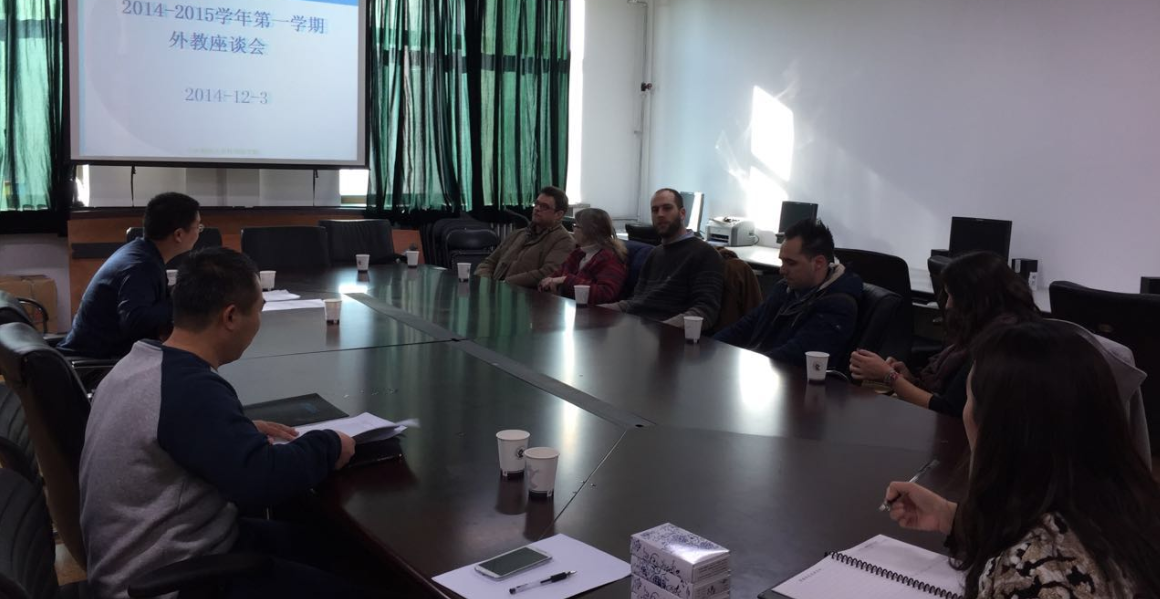 12月3日上午10点,学院在实验楼702会议室召开了2014-2015学年第一学期外教座谈会。开元(中国)师文杰副院长、傅强老师、张枫老师、温剑波老师、孙茜老师以及五位外教代表出席了本次座谈会。中外教代表老师就我校本科生、研究生和MBA学生的教学现状进行了交流,对教学中遇到的问题及疑惑进行了的探讨。通过这次座谈会,学院对学生的学习现状及外教在教学中存在的实际困难有了更全面的了解,就沙河校区教室容量不足等问题进行了记录。外教们也互相交流和学习了彼此的教学经验。