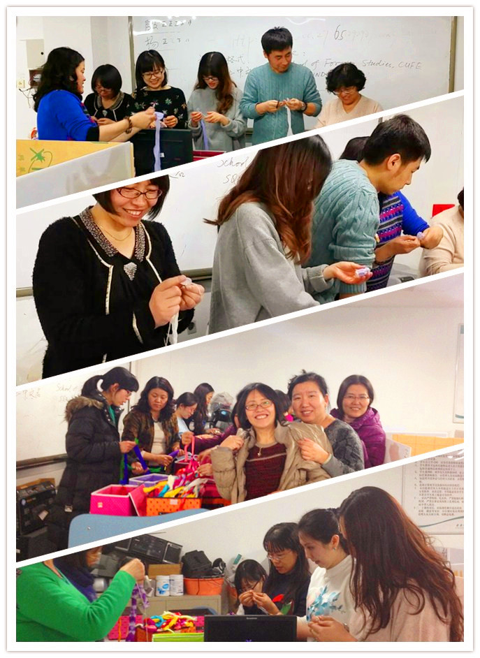 2015年1月,该兴趣社以“丝网花”制作为主题,共举办了三次活动,共计30多名老师积极参与。活动由兴趣社负责人李超杰老师发起,由她传授丝网花制作方法。老师们共聚一堂,认真地观摩李超杰老师的每一步演示,迫不及待地拿起手中的制作工具,制作属于自己的那支美丽的花朵,从拧圈、选色、套网、拼接、缠线,每一个细微的制作环节都体现了老师们的热情。