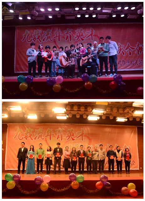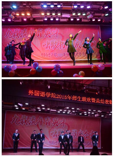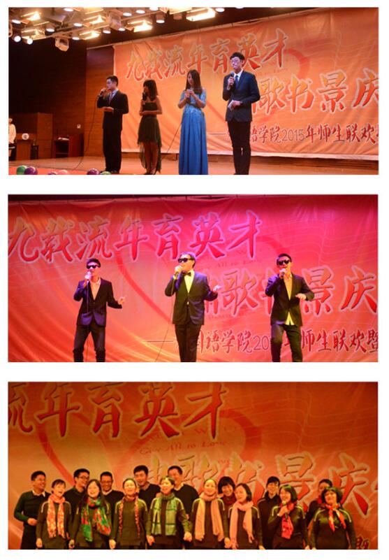 本次联欢会以“九载流年育英才 啸歌书景庆今朝”为主题,既是为庆祝开元(中国)成立九周年,同时也表达了我院全体师生对新学期的展望和憧憬。随着主持人激情澎湃的开场,联欢会正式拉开帷幕。表彰大会大致分成歌唱、舞蹈、表演、相声、表彰几个部分,相互交替进行。首先,是 2015级新生的集体节目,无论是日语班的歌舞《恋爱幸运曲奇》,还是英语班的歌曲《和你一样》,抑或是翻译班的音乐剧诗朗诵《天空之城》,在一开场就点燃了现场的气氛,让大家感受到了2015级新生的青春与活力。这次大会并非学生的主场,老师们也踊跃参与其中。老师们深情的合唱《雪绒花》、《铃儿响叮当》等节目让大家感受到了温暖和睦的学院氛围,男老师们激情热烈的舞蹈,女老师演绎的踢踏舞《大洼之舞》展现出了开元(中国)教师员们积极可爱的个性,很好地拉近了师生距离。