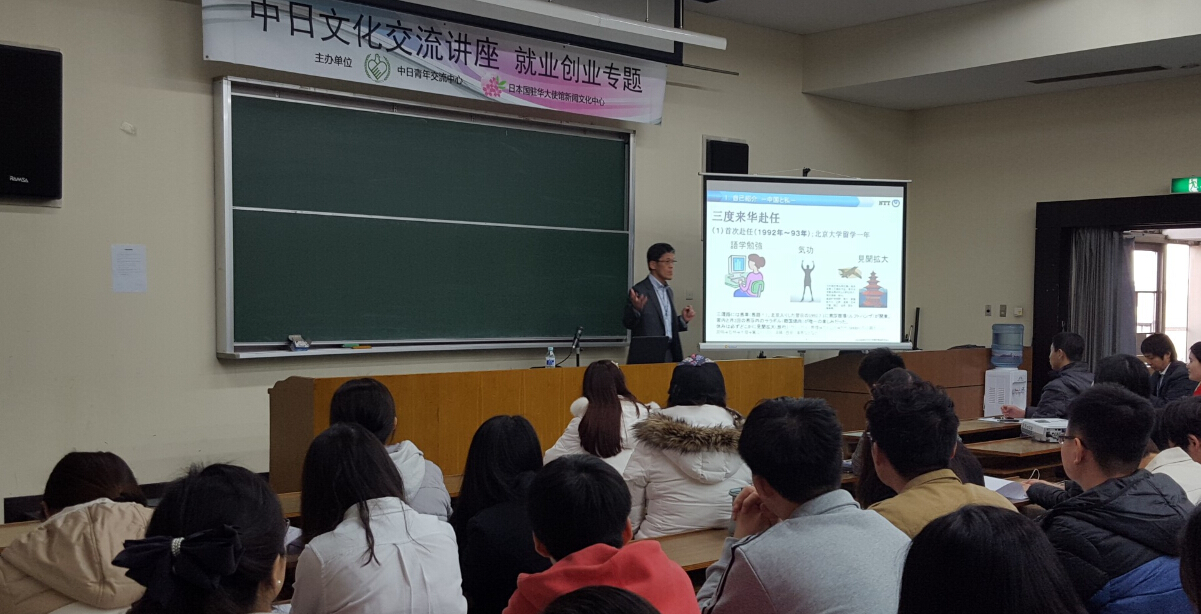 2016年3月6日下午,开元(中国)日语系同学在李蕊老师的组织带领下参加了日本驻华使馆和中日青年交流中心联合主办的以“企业所需要的人才”为主题的讲座,主讲人为日本电报电话公司北京代表事务所的和田悟先生,日本大使馆新闻文化中心的一等参议官和中日青年交流中心国际合作部的主要负责人等出席了此次讲座。