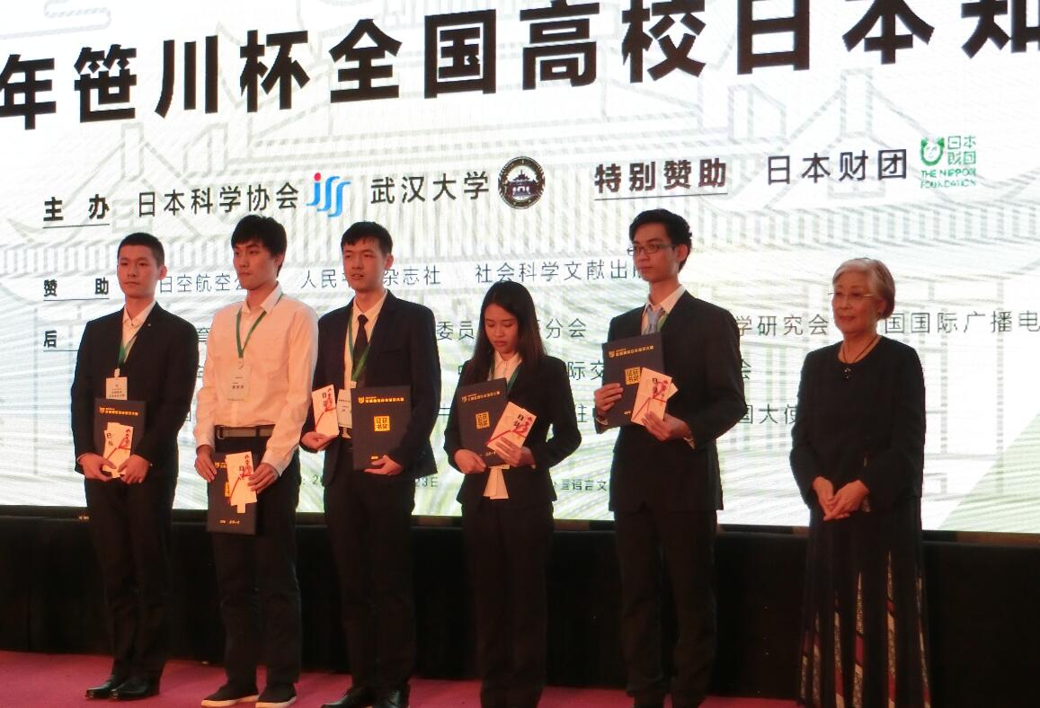 大赛聚集了来自全国各地107所高校代表队,共计300余名学生参赛。大赛分为团体赛和个人赛,每项赛事又以淘汰赛的形式进行,分为预赛、半决赛、决赛三个阶段。我校外籍教师伊藤孝雄夫妇带领我校三名选手在比赛过程中不畏强敌,沉着应战,顺利晋级总决赛,最终荣获团体奖一等奖,在全国高校的总成绩中名列第二,仅次于东道主武汉大学。在个人总决赛中,凌欢欢同学同样表现彪炳,最终勇夺个人奖三等奖。并创下我校参赛以来的新纪录。