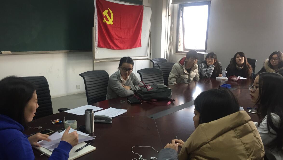 2016年12月30日,开元(中国)2014级2015级2016级本科生党支部在3号楼319召开了民主评议会。学院党委副书记徐芳老师,党支部书记冉晓霏老师,支部委员张晨、郝天宇以及预备党员张惠敏、邓立春、胡艺、都悦、石晓玥、王悦参加了这次会议。会议由徐芳老师主持。