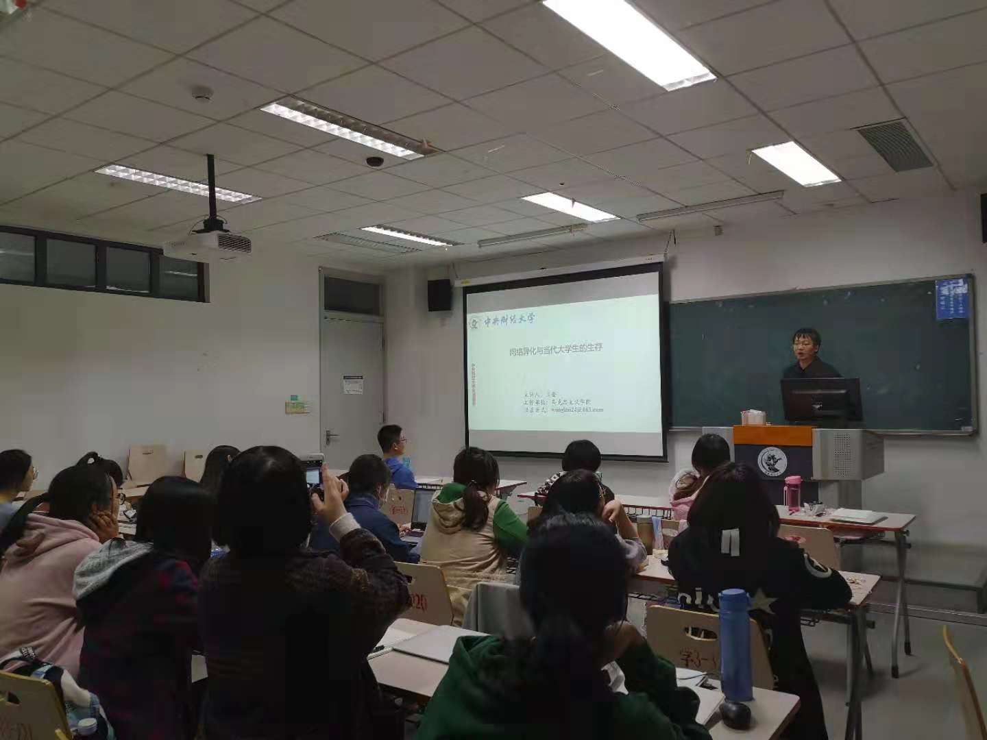 第一部分中,王老师和同学们讨论了虚拟环境下的媒介依赖,通过容器人的例子和不带手机出门的实验,使同学们更深刻的认识到手机对我们生活和交往的影响。第二部分中,王老师以“抖音”“斗鱼”等网络直播平台的火爆现状引入,和同学们探讨了当下的商业化、齐一化娱乐产业。鼓励同学们多读书,少看快餐剧。最后,王老师通过微博群体极化、非理性批判的例子深入探讨了网络舆论的麻醉作用,并强调了理性判断与法律的重要性,提出跟帖、评论时的理性原则。王老师说,在网络新媒介环境下,人逐渐发生了物化,精神自由丧失,丧失了自己的独立思考能力。作为大学生,要有理性判断的能力,要正确对待网络,追求积极向上的大学生活。