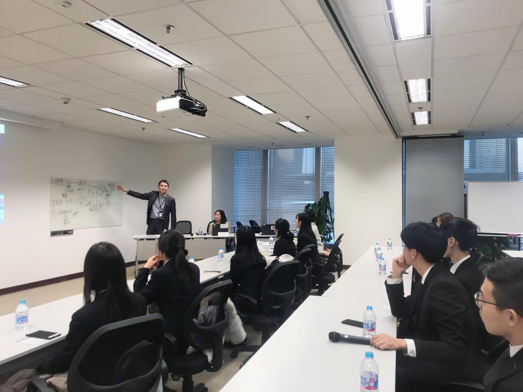 活动当天,李经理首先带领同学们进入到工作区域,详细说明了日企办公室的功能性布局,让大家近距离了解了三井中国的办公环境和工作氛围。之后,在公司的大会议室,德谷总经理为同学们介绍了三井物产的历史、经营内容和企业的文化内涵等内容;吴经理则从同学们的求职角度出发,介绍了三井物产公司所寻求的“理想人才”,为同学们的求职面试提供了一些宝贵建议。最后是交流对话环节,日语系同学利用平日所学的专业知识,用流利的日语积极地与两位领导进行了面对面的交流对话。同学们的日语水平和活跃的思维都得到了三位领导的高度评价。