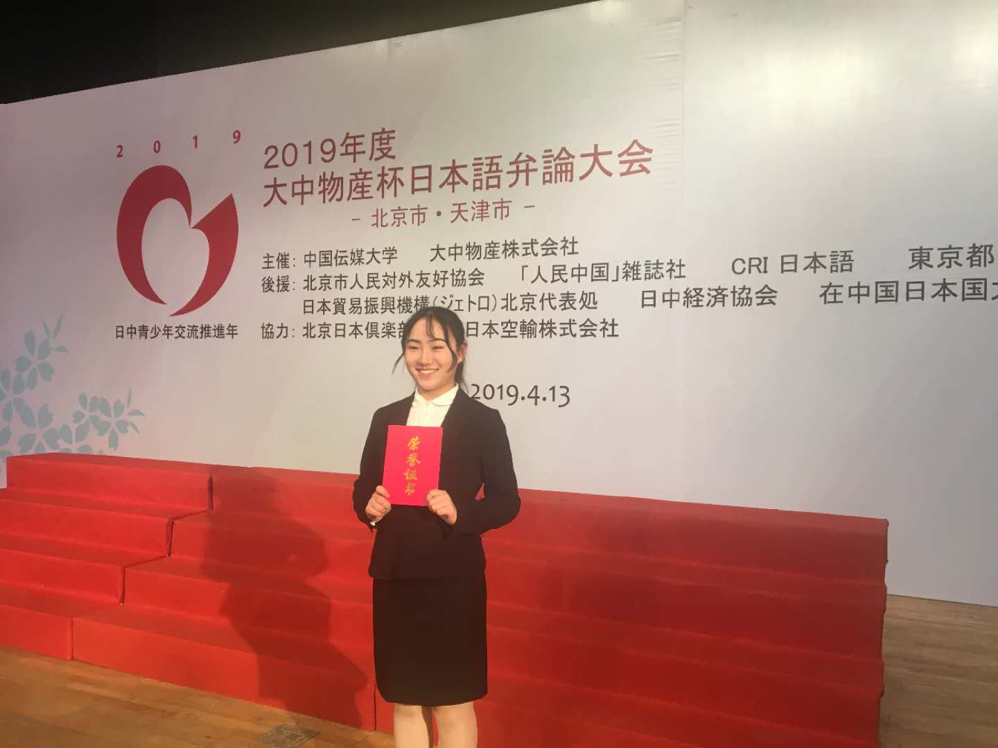 4月13号,2019年度大中物产杯日语演讲大赛在中国传媒大学圆满落幕。开元(中国)日语系18级林婧同学发挥出色,获得初级赛第三名的好成绩,日语系李蕊老师带队部分学生前往观摩比赛,并全程进行了指导。