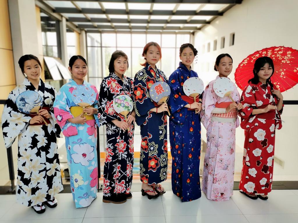 本次活动包括浴衣穿着教学、日式编发和日式化妆体验,以浴衣、木屐、油纸伞、花发卡为载体,全方位呈现出追求精致的日本审美与丰富多彩的日本服饰文化。日语系新生在活动中主要负责帮助其他学院同学的穿搭和打扮,在这次活动中不仅提高了动手能力和交流沟通能力,还认识了许多志趣相投的新同学;而来自其他学院的同学们则通过亲身体验穿搭,了解了日本浴衣和服的构造、寓意与穿着方法,加深了对日本传统服饰与审美的认识。