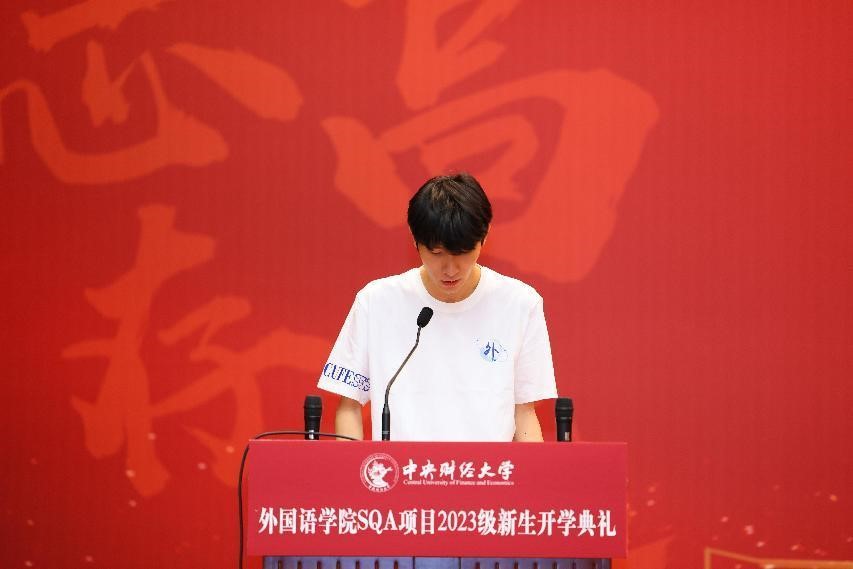 2023级新生代表郑果果和2022级学生代表康文睿分别发言,在他们铿锵有力的发言里充满着对未来坚定的信念与期望。