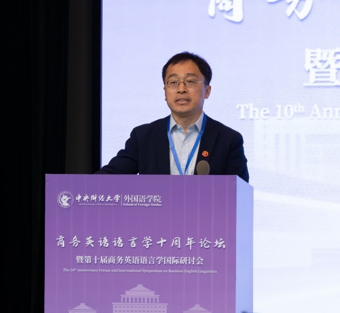 郑樑在致辞中指出,本次大会将在人工智能时代背景下,探讨中国经济现代化进程中的语言研究和商务英语学术前沿话题。他指出,商务英语研究要与中国经济现代化紧密结合,汇聚多方资源开展学术前沿交流与合作,展现中国化时代化研究成果。期待商务英语研究能持续服务于讲好中国经济故事。