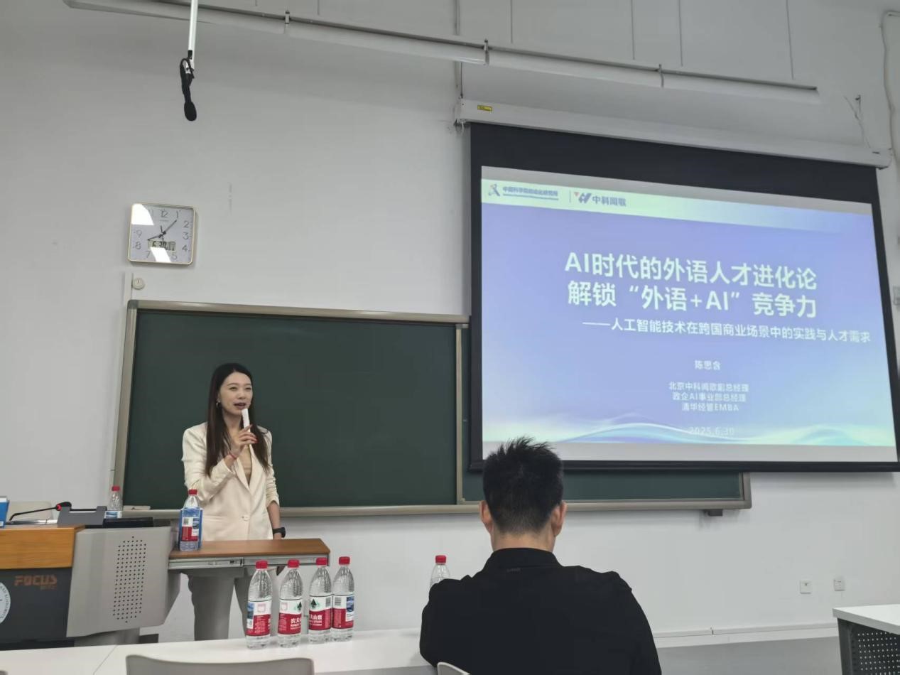 6月30日上午,行业点津模块“人工智能”方向讲座在沙河校区第二教学楼103教室顺利举办。此次讲座有幸邀请到北京中科闻歌科技股份有限公司副总经理兼政企AI事业部总经理陈思含。陈思含老师首先为同学们介绍了自己的三次创业经历,强调就业选择的灵活性以及AI时代外语人才的跨学科素养的重要性。随后,她聚焦“AI时代的外语人才进化论解锁‘外语+AI’竞争力”,从技术纵览、战略需求和实战进化三个方面讲述课程。在技术纵览部分,陈老师着重为同学们介绍了当前大模型的优缺点以及DeepSeek的技术特点与核心突破、操作指南与应用场景。之后,她分析了AI模型在多方面的运用:在产业经济洞察方面,可以精准分析辖区内企业经营情况,强化风险防控;融媒体方面,可以对多语言信息传播路径进行追踪;人才追踪方面,利用大模型可以从舆情入手,实现精准引才。随后,陈经理及其团队成员为师生具体演示了雅意文本大模型和优雅视频大模型的功能和操作方法。最后,英语系主任范莉老师总结了本次讲座的主要内容,她强调了不仅在模型运用上要做到“通识、通专、通融、通畅”,在专业人才培养上更要做到这一点。