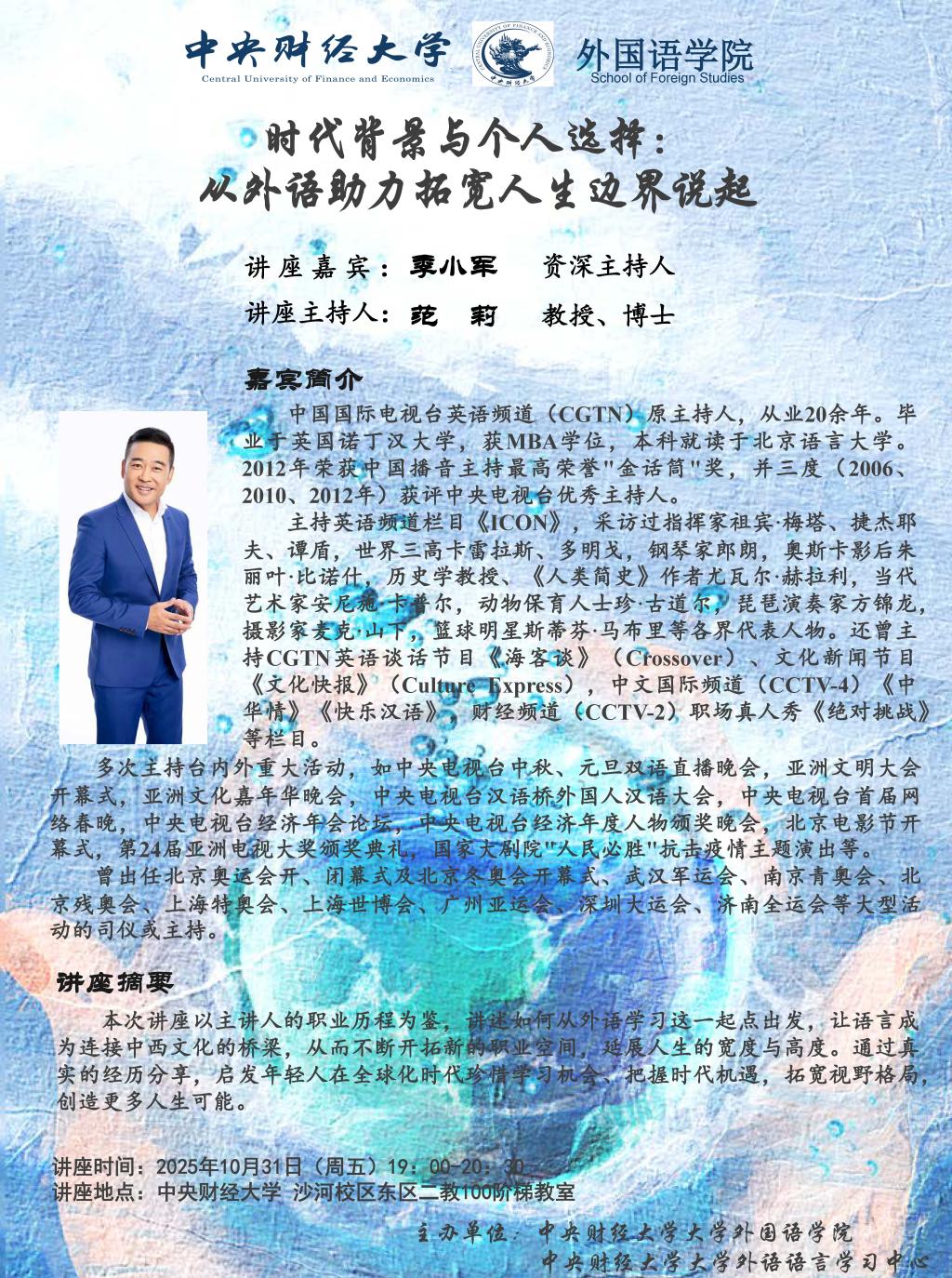 时代背景与个人选择:从外语助力拓宽人生边界说起 季小军讲座预告